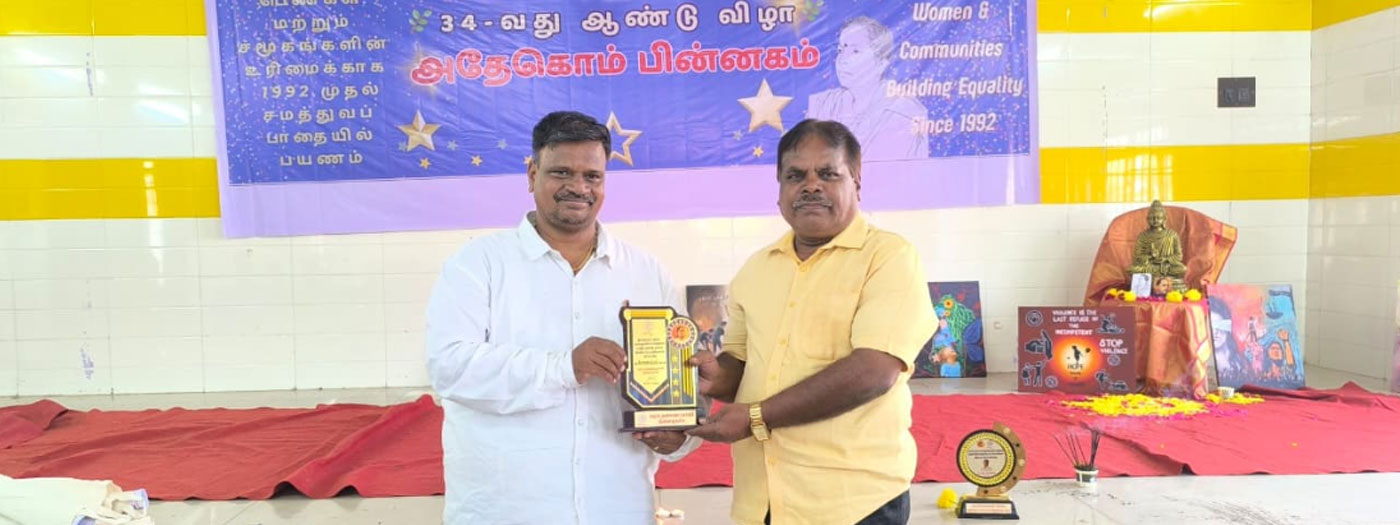- Best Organisation working for women award Pandithar Adothidassar award in 2017 received from Honourable Indian Union minister Sri .Narayanasamy.